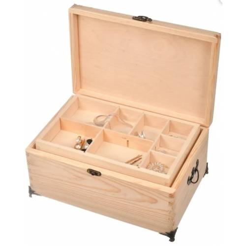 Drewniana szkatułka na biżuterię z przegródkami – elegancki prezent