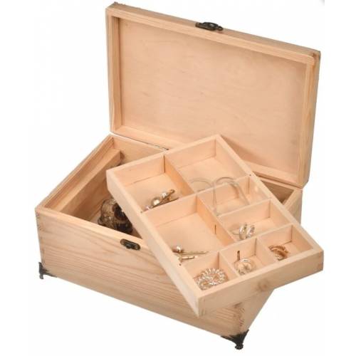 Elegancka drewniana szkatułka na biżuterię z przegródkami to praktyczne i stylowe rozwiązanie do przechowywania pierścionków, kolczyków i naszyjników. Wykonana z naturalnego drewna, zachwyca estetyką i trwałością. Funkcjonalne przegrody ułatwiają organizację biżuterii i chronią ją przed zarysowaniami. Idealna jako prezent dla kobiety, na urodziny, rocznicę lub święta.