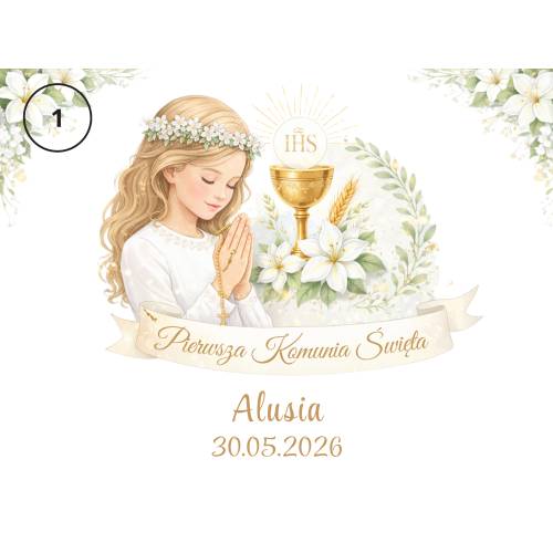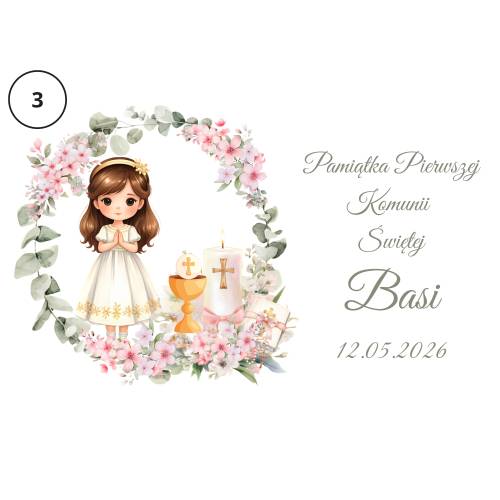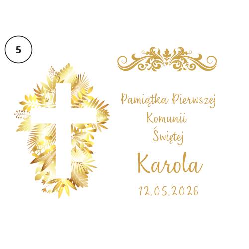 Na wieku pudełka wykonywany jest nadruk, obejmujący imię dziecka oraz motyw religijny związany z Pierwszą Komunią Świętą. Technologia nadruku zapewnia trwałość detalu – napis nie ściera się i nie blaknie.