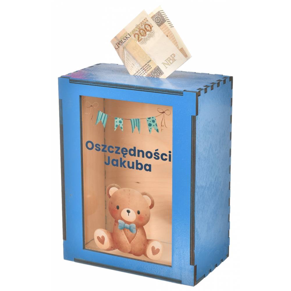Drewniana Skarbonka dla Dziecka z Imieniem – Personalizowana z Szybką